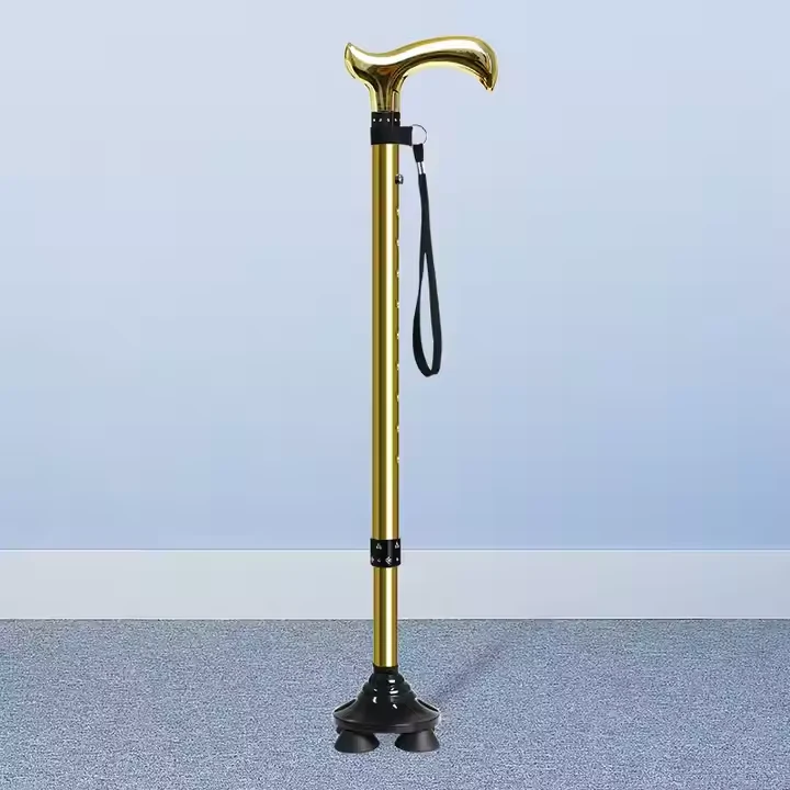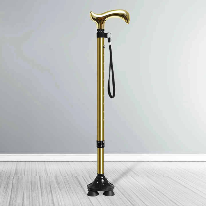 अॅलोय टेलीस्कोपिक वॉकिंग पोल, क्वाड बेस हे एक स्वत: ची उभी छडी बनवते जी फरशीवर घसरणे किंवा सोडणे काढून टाकते .. झेझियांग जिय्यू आउटडोअर प्रॉडक्ट्स कंपनी, लि., केनला कडक करते सिलिकॉन प्रतिरोध रिंगसह कनेक्टर, अपघाती कोसळण्यापासून प्रतिबंधित करते. एकदा कडक केल्यावर छडी एक घन कठोर चालण्याच्या काठीप्रमाणे काम करते.