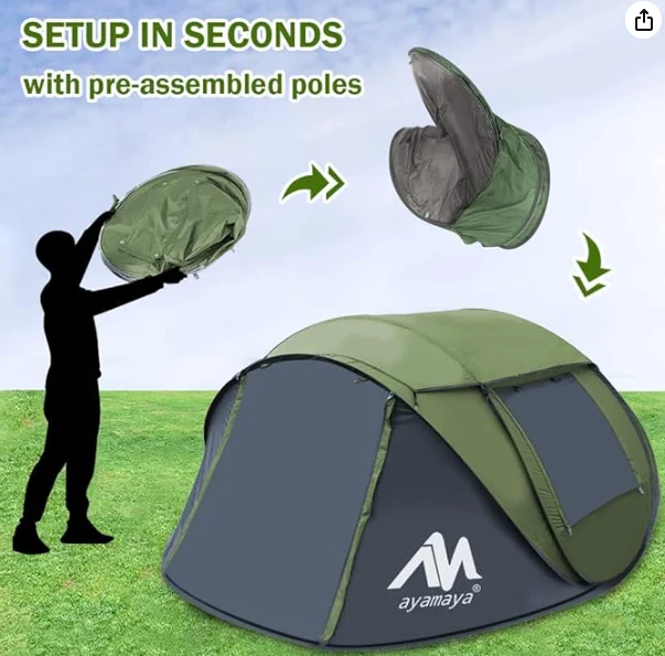स्वयंचलित फास्ट ओपन कॅम्पिंग तंबू, फक्त कॅम्पिंग तंबू बाहेर काढा आणि त्यास न थांबवा, सेकंदात ते आपोआप पॉप अप होईल.