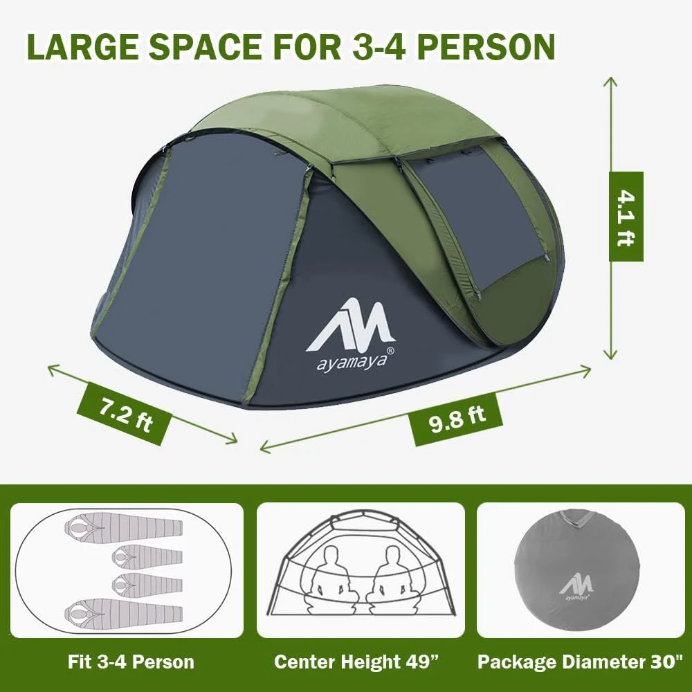 स्वयंचलित फास्ट ओपन कॅम्पिंग तंबू, 4 व्यक्ती वॉटरप्रूफ इन्स्टंट फॅमिली तंबू स्काइलाइट आणि काढण्यायोग्य रेनफ्लायसह तंबू पॉप अप करते, 2 दरवाजेसह मोठ्या आकारात श्रेणीसुधारित केले -ऑटोमॅटिक इझी सेटअप बीच बीच तंबू
