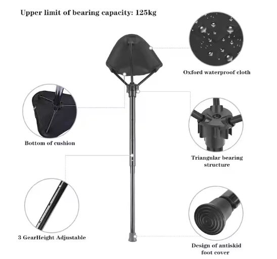 फोल्डेबल ट्रॅव्हल चेअर, ट्रायपॉड सीट पृष्ठभागावर डबल लेयर ऑक्सफोर्डसह समाप्त, अधिक टिकाऊ आणि स्थिर, प्रौढांसाठी हे ट्रायपॉड कॅम्प स्टूल 300 एलबीएस आरामदायक अनुभवाचा आनंद घेण्यासाठी मोठ्या आणि उंच व्यक्तीस फिट आहेत.