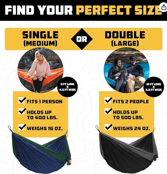 पोर्टेबल 3-इन -1 कॅम्पिंग हॅमॉक, आमचा मजबूत हॅमॉक हा एक समंजस उपाय आहे जो शेवटपर्यंत टाका! हे 2, 9-फूट टॅलॉन पट्ट्या, 2 ओ-आकाराचे कॅरेबिनर आणि संलग्न स्टोरेज बॅगसह सुसज्ज आहे. हे सेट करणे सोपे आहे तितके टिकाऊ, आमचा हॅमॉक एक कॅम्पिंग आवश्यक आहे.