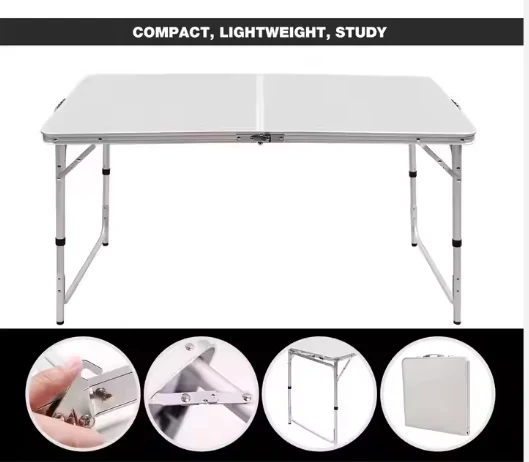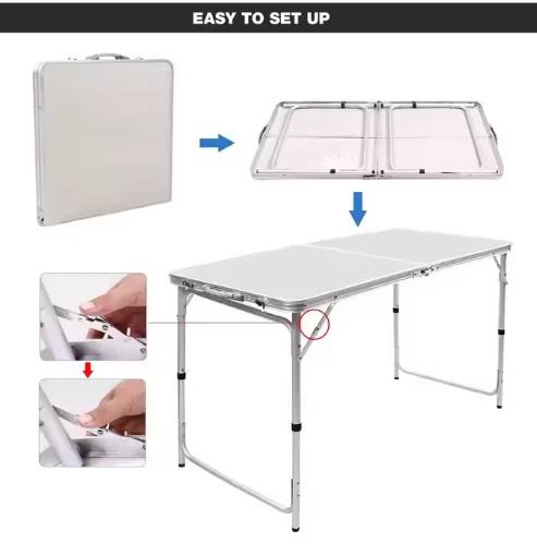 पोर्टेबल फोल्डिंग अॅल्युमिनियम टेबलमध्ये घरातील आणि मैदानी दोन्हीपैकी बहु -कार्यक्षम उपयोग आहेत, ज्यात पिकनिक टेबल, बीच टेबल आणि कॅम्पिंग किचन टेबल, जे कॅम्पिंग, बीच, पर्यटन, क्रीडा कार्यक्रम, बाहेरील आरव्ही आणि फिशिंगसाठी वापरले जाते.