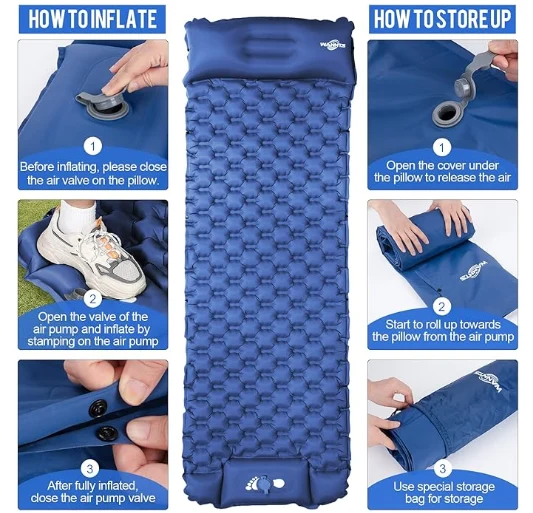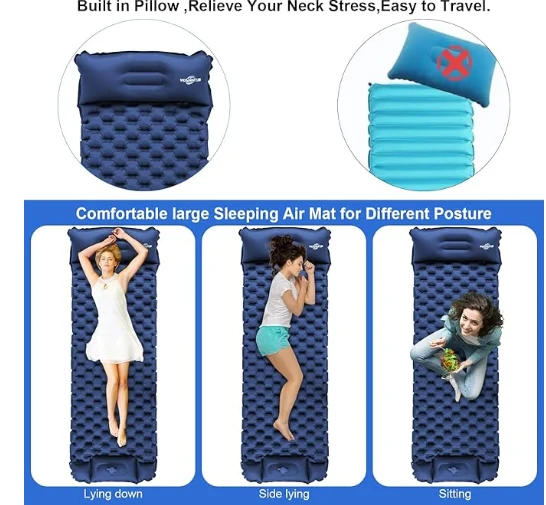 पोर्टेबल टीपीयू इन्फ्लॅटेबल कॅम्पिंग चटई हा दर्जेदार पोर्टेबल कॅम्पिंग पॅड परिपूर्ण, उत्कृष्ट आणि उत्कृष्ट आरामदायक आहे - कोणत्याही झोपेच्या स्थितीसाठी उत्कृष्ट!