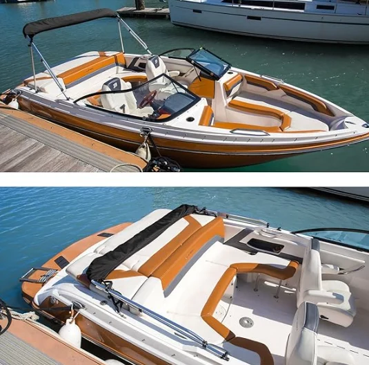 डबल पीयू कोटिंगसह सागरी ग्रेड 600 डी पॉलिस्टर कॅनव्हासपासून बनविलेले स्टेनलेस बोट बिमिनी टॉप, आमचे स्टोरेज बूट सूर्यप्रकाश, समुद्री पाणी, पाऊस आणि धूळ पासून चांगले संरक्षण प्रदान करते.