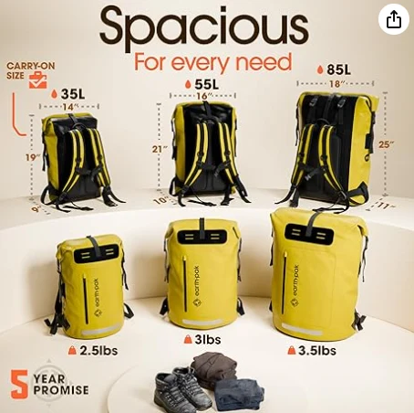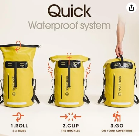 वॉटरप्रूफ ड्राय बॅकपॅक डफेल बॅग, प्रवास, कयाकिंग, बाइकिंग, प्रवास, कॅम्पिंग आणि फिशिंग करताना आपले गियर पूर्णपणे कोरडे राहते हे सुनिश्चित करण्यासाठी 100% वॉटरप्रूफ